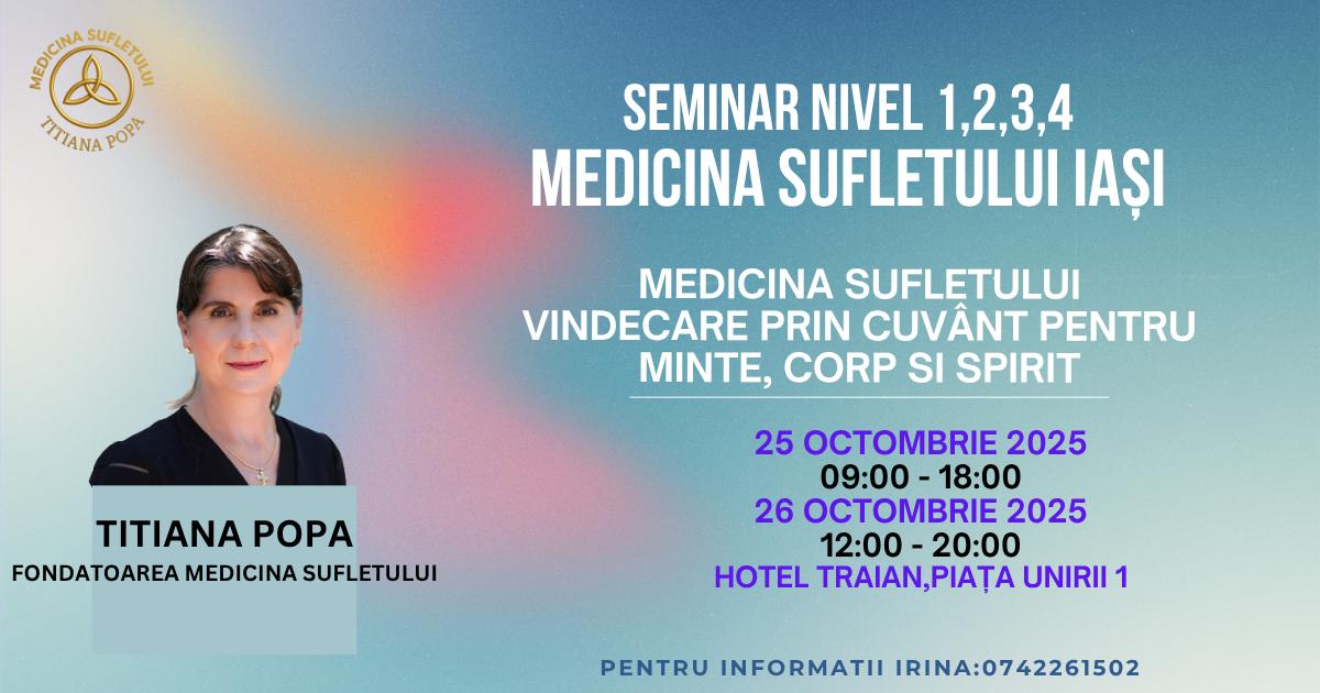 octombrie 26, 2025Published by Lupascu Irina on octombrie 26, 2025Categories Evenimente trecuteSeminar Nivel 1, 2, 3 si 4 “Medicina Sufletului: Vindecarea Prin Cuvant pentru minte, corp si spirit” Iași – 25-26 octombrie ’25